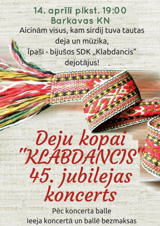 Aicinām visus, kam sirdij tuva tautas deja un mūzika, īpaši bijušos SDK „Klabdancis” dejotājus.