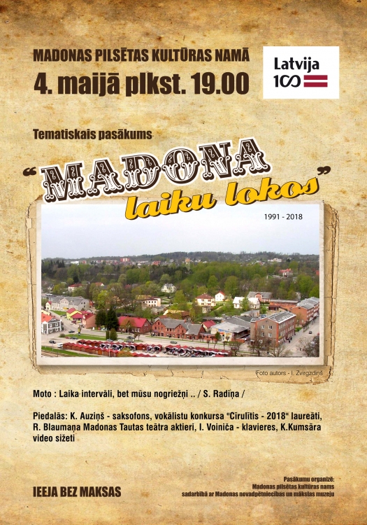Madonas pilsētas kultūras namā 4.maijā pulksten 19:00.
