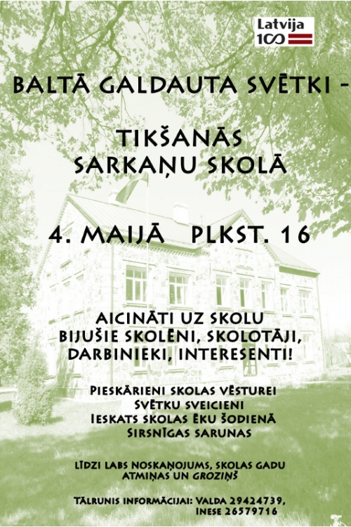 Tiekamies Sarkaņu skolā 4.maijā pulksten 16 Baltā galdauta svētkos!Informāciju sagatavoja: Inese Sudāre.