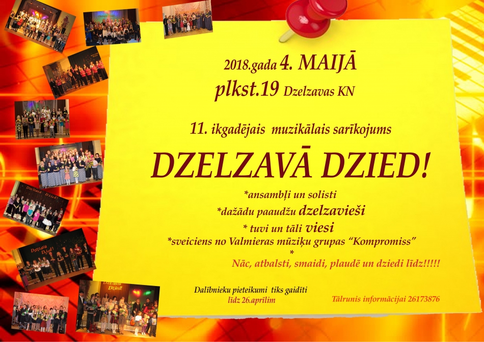Tāpēc - piesakies un dziedi! Pieteikumi tiks gaidīti līdz 26.aprīlim (mob.tālr.: 26173876).
