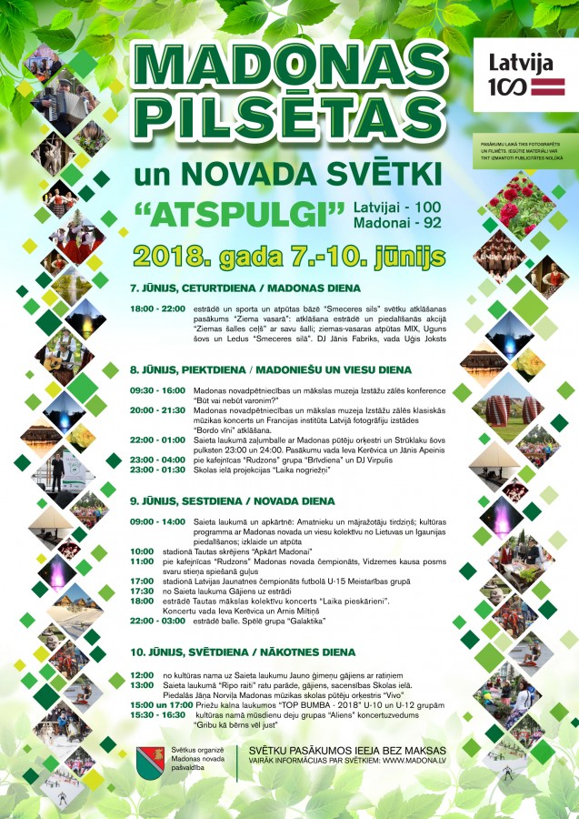 Madonas pilsētas un novada svētki "Atspulgi". Latvijai - 100, Madonai - 92