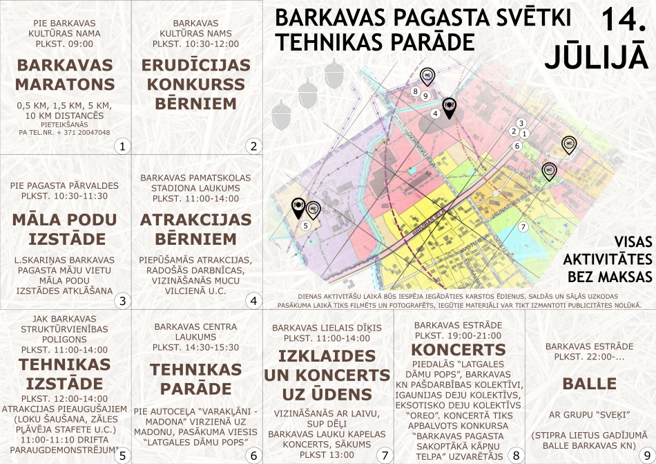 Pie Barkavas kultūras nama09:00 “Barkavas maratons” (0.5 km, 1.5 km, 5 km, 10 km distancēs) pieteikšanās pa tel. nr.: 20 047 048