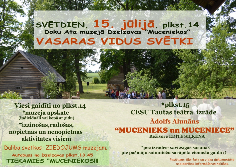 Uz tikšanos 15.jūlijā Vasaras vidus svētkos Doku Ata “Muceniekos”!Ieeja pasākumā: brīvprātīgs ziedojums muzejam.