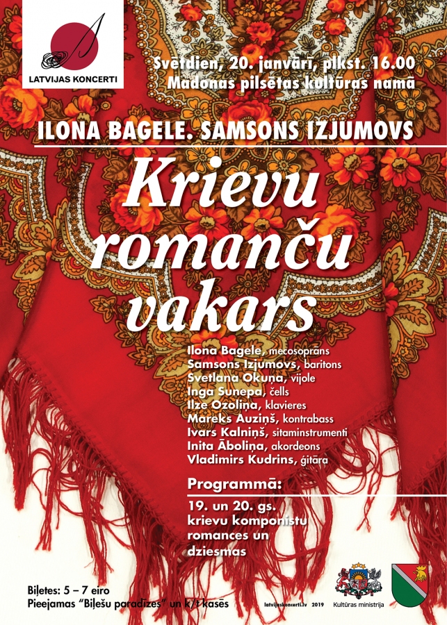 Madonas pilsētas kultūras namā 20.janvārī pulksten 16:00. Biļetes cena: 5.00, 7.00 EUR.