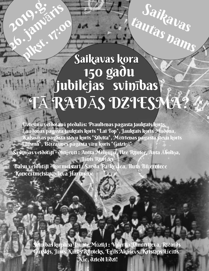 Nāc, dziedāsim kopā!Saikavas tautas namā 26.janvārī pulksten 17:00.Ieeja bez maksas.