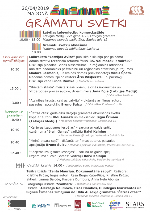 Madonas novada bibliotēkā un citviet Madonā no pulksten 10:00.Ieeja bez maksas.