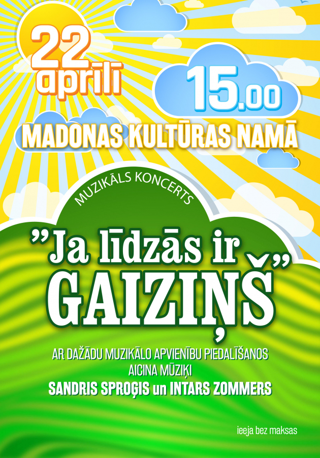 Madonas pilsētas kultūras namā 22.aprīlī pulksten 15:00.Ieeja bez maksas.