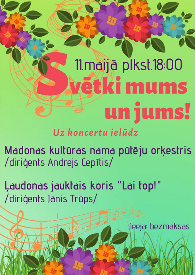 Koncertā piedalās Madonas pūtēju orķestris A. Cepīša vadībā.