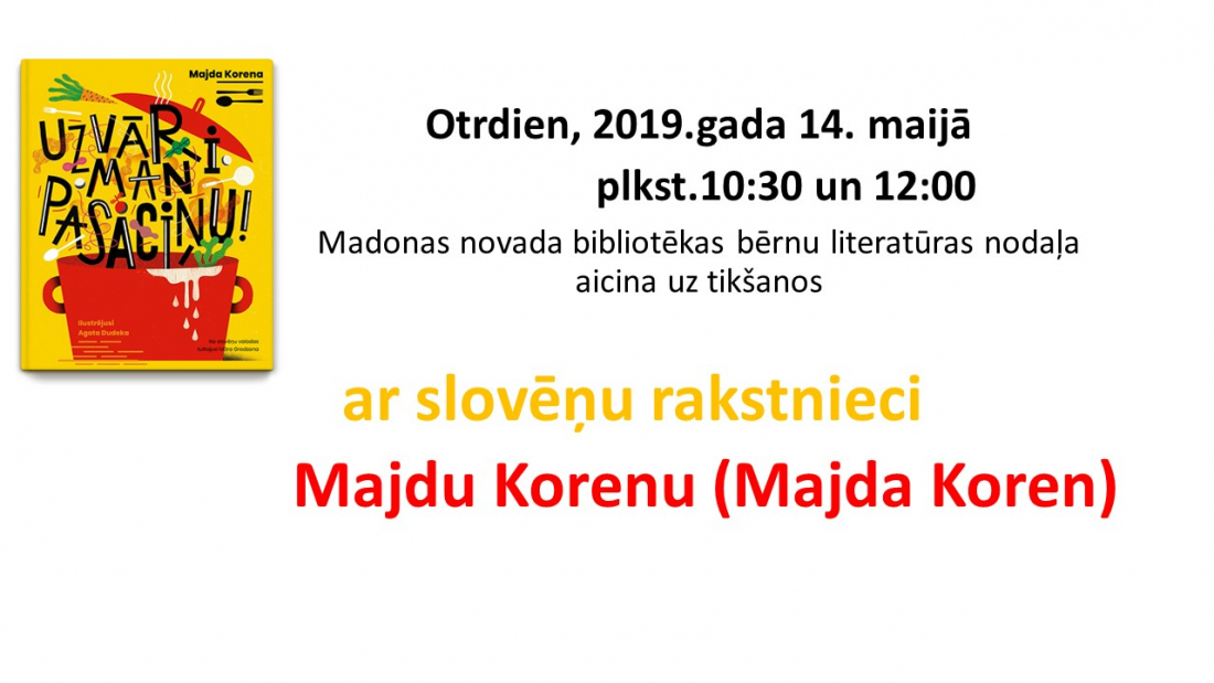 Projekts gandrīz noslēdzies un laiks saņemt balvu – tikšanos slovēņu rakstnieci Majdu Korenu (Majda Koren), grāmatas "Uzvāri man pasaciņu!" autori, kas notiks Madonas novada bibliotēkas bērnu literatūras nodaļā 2019. gada 14. maijā plkst. 10.30 un 12.00.
