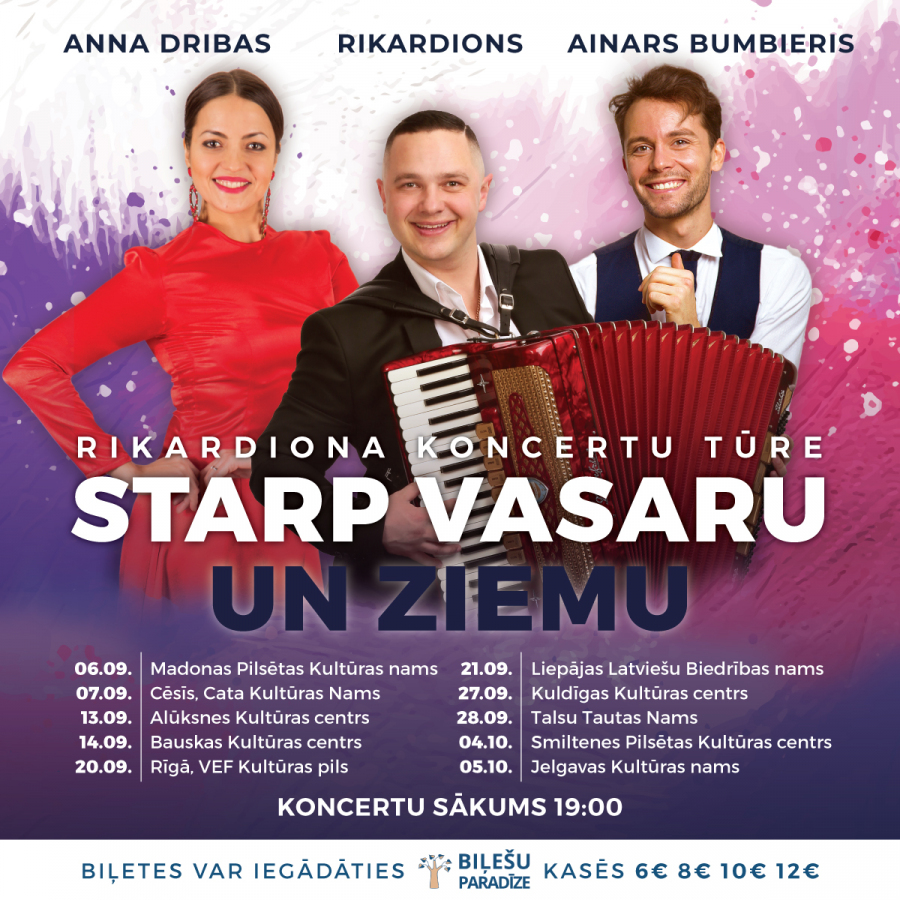 Koncertā “Starp vasaru un ziemu” skanēs rudenīgas dziesmas jaunās kompozīcijās. Par koncerta pavadošo, instrumentālo, dzīvo sastāvu rūpēsies meistarīgais pianists Anatoliojs Livča. Koncerts būs divās daļās divu stundu garumā.