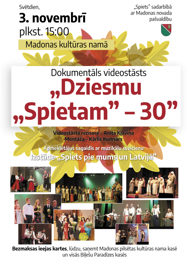 Madonas pilsētas kultūras namā 3.novembrī pulksten 15:00.
