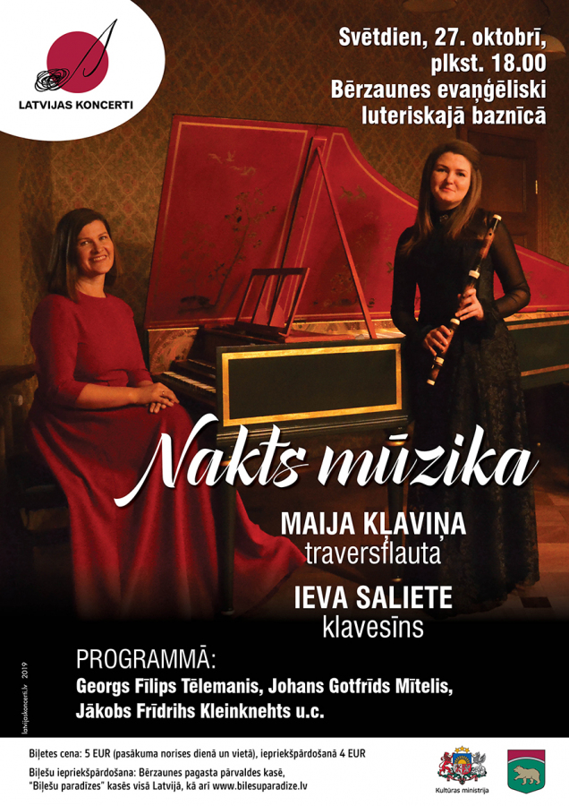 Bērzaunes evaņģēliski luteriskajā baznīcā 27.oktobrī pulksten 18:00.Biļetes cena: 5.00 EUR (pasākuma norises dienā un vietā), iepriekšpārdošanā 4.00 EUR.