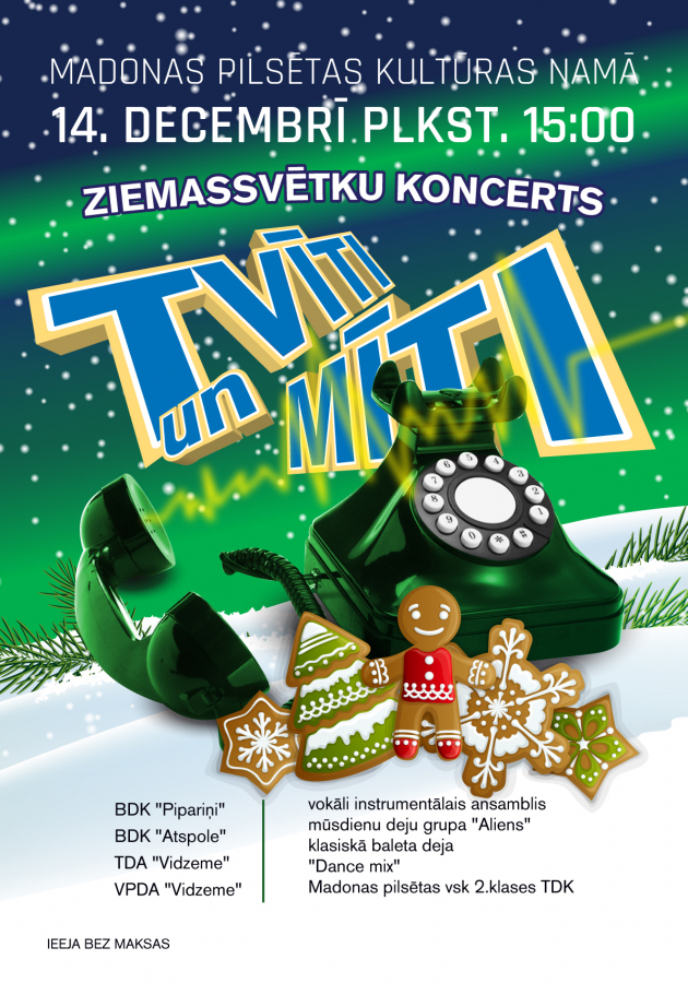 Madonas pilsētas kultūras namā 14.decembrī pulksten 15:00.Ieeja bez maksas.