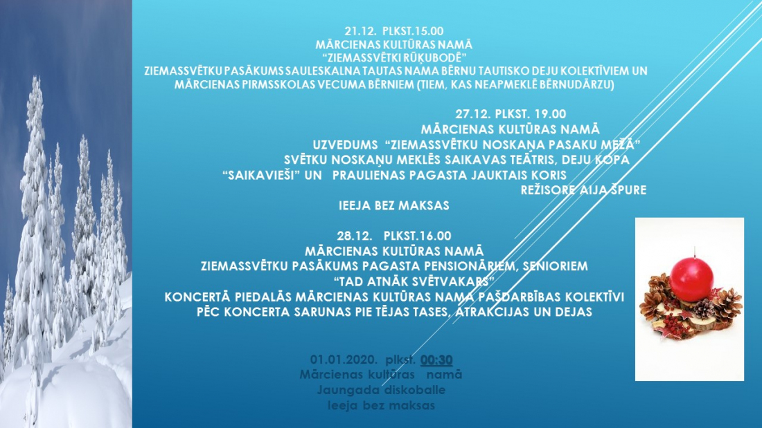 Mārcienas kultūras namā 1.janvārī pulksten 00:30.