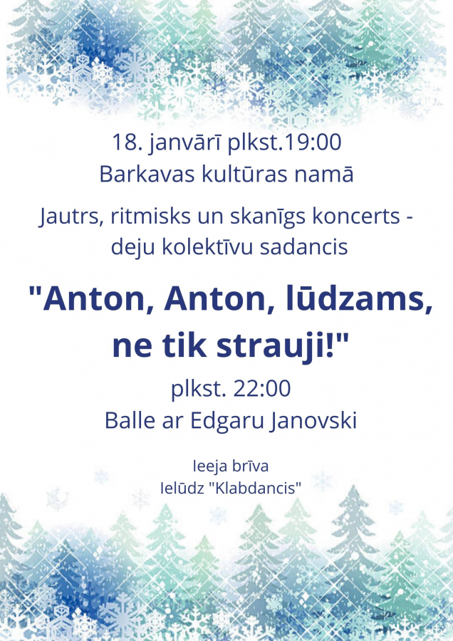 "Anton, Anton, lūdzams, ne tik strauji..." būs jautrs, muzikāls un ritmisks koncerts, jo kopā uzstāsies vairāki deju kolektīvi, akordeonistu ansamblis un citi dalībnieki.