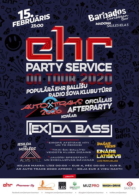 PARTY SERVICE ON TOUR 2020, kā arī AUTO TRAKS 2019 Oficiālā Afterparty starts – plkst.23:00! Ieejas maksa klubā: līdz 00:00 – EUR 4, pēc – EUR 5. Ar AUTO TRAKS 2020 aproci – ieeja EUR 4 VISU NAKTI!