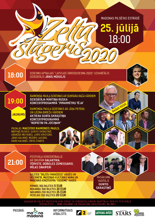 Koncertu virkni sāksim ar šī gada “Sirdsdziesmu” aptaujas uzvarētāja Jāņa Moiseja uzstāšanos pulksten sešos vakarā. Pēc stundas, septiņos, izskanēs divas jaunas komponista Raimonda Paula programmas – Mārtiņa Ruska “Piparmētru tēja” ar Guntara Rača vārdiem un populārā aktiera Gunta Skrastiņa absolūts jaunums, pirmatskaņojums Madonā(!) – vēl nedzirdētas Maestro dziesmas ar Jāņa Petera un mūsu novadnieka Leona Brieža vārdiem koncertprogrammā “Nopietni pa jociņam”. Starp citu, arī “Piparmētru tējai” šis būs tikai otrais koncerts – pirmatskaņojums paspēja izskanēt īsi pirms apmeklējumu ierobežojuma sākuma.