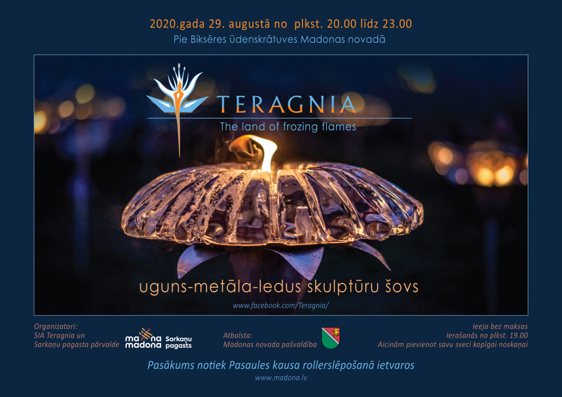 TERAGNIA ir uguns, metāla un ledus skulptūru noskaņu parks - šovs, kas 4 stundu garumā caur pirmelementu skaistumu runā par līdzsvara nozīmi pasaulē.