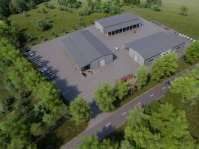 Projekta ietvaros paredzēts izbūvēt 3 angāra tipa ražošanas ēkas un labiekārtot tām pieguļošo teritoriju: