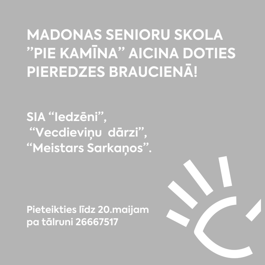 Madonas Senioru skola ”Pie kamīna”” aicina doties pieredzes braucienā.