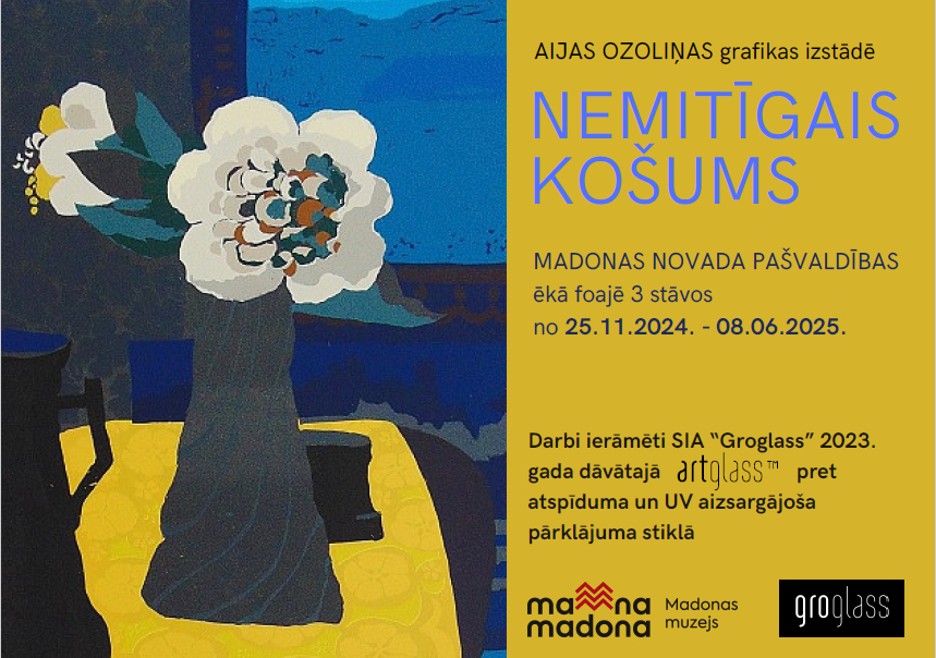 2023.gada sākumā Madonas novadpētniecības un mākslas muzejs ar Latvijas Muzeju biedrības starpniecību saņēma iespēju pieteikties SIA “Groglass” īpašajam piedāvājumam Latvijas mākslas muzejiem. SIA “Groglass” ir viens no vadošajiem anti-reflektīvo un citu augstas veiktspējas stikla pārklājumu izstrādātājiem un ražotājiem pasaulē, un 2024. gadā atzīmēja 20 gadu jubileju. Šim notikumam par godu uzņēmums izlēma piešķirt antireflektīvo stiklu kādai no Latvijas mākslas muzeju pastāvīgajām ekspozīcijām. Šāds stikls ir ļoti vēlams pilnvērtīgai grafisko darbu eksponēšanai, lai apmeklētājs varētu novērtēt mākslas darba kvalitātes bez traucējošiem vides atspulgiem.