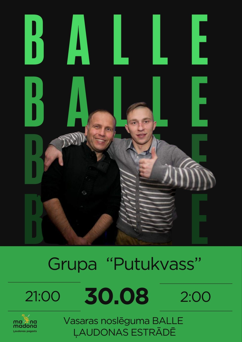 30. augustā plkst. 21.00 Ļaudonas estrāde notiks vasaras noslēguma balle, kurā par muzikālo noskaņu rūpēsies grupa “Putukvass”.