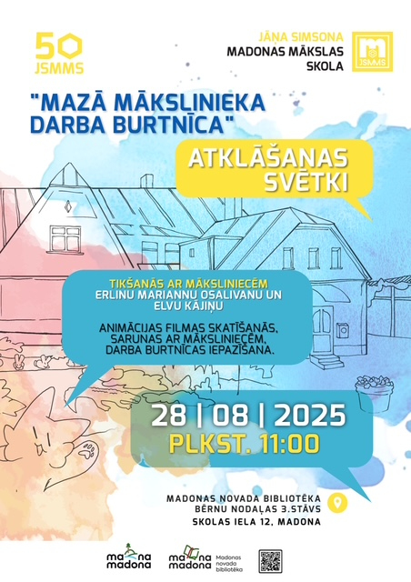 Tagad Jāņa Simsona Madonas mākslas skolas bērniem būs pašiem sava darba burtnīca, kur attēlota skolas vide, pilna jautriem piedzīvojumiem, zinātkāriem uzdevumiem un mākslas burvību. Burtnīca tiks izmantota mācību darbā no 2025./2026.m.g.