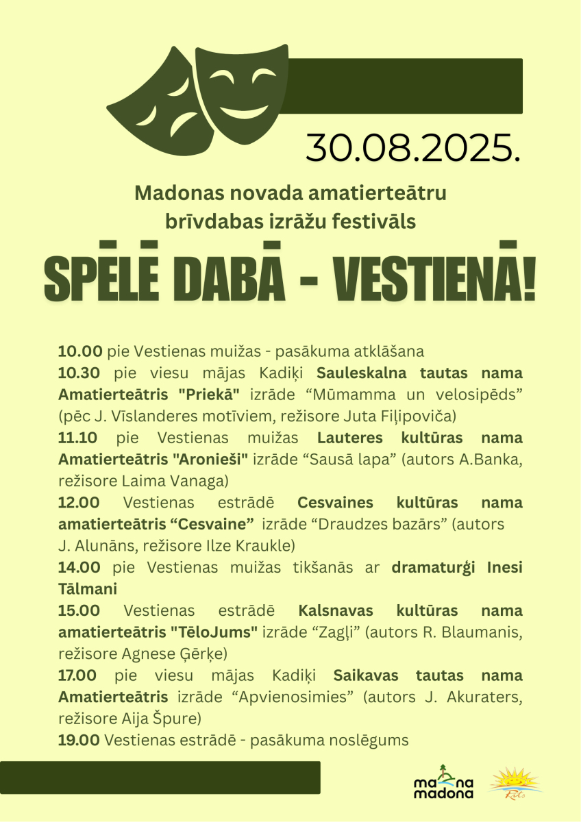 Aicinām uz Madonas novada amatierteātru brīvdabas izrāžu festivālu "Spēlē dabā – Vestienā!"