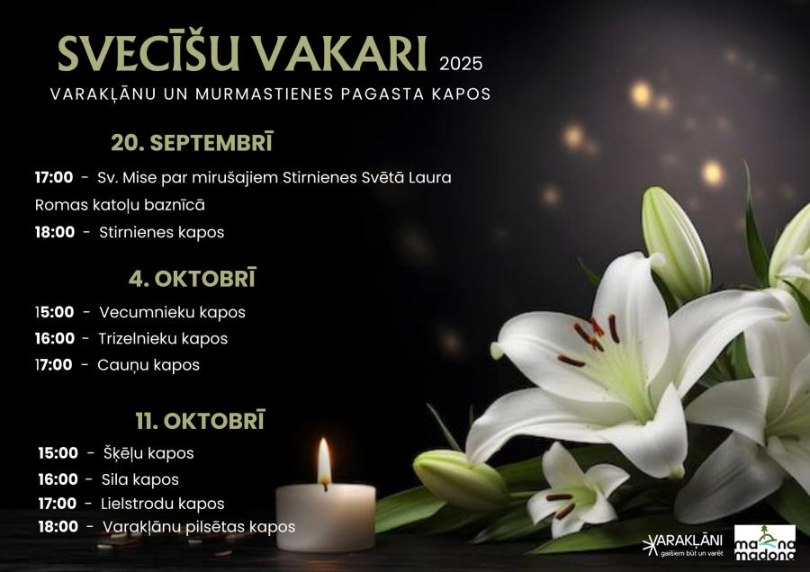 Septembra beigās un oktobra sākumā Varakļānos un Murmastienes pagasta kapos norisināsies svecīšu vakari.