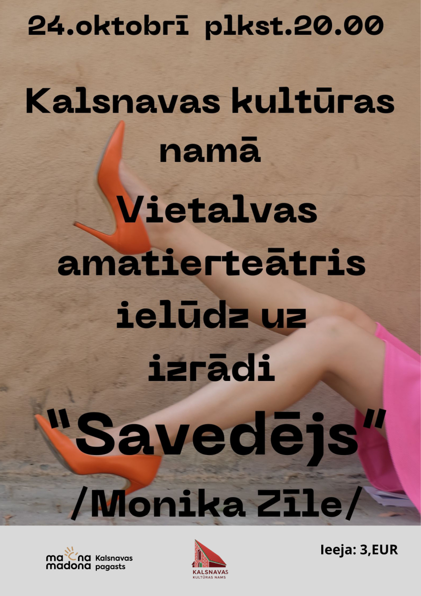 Kalsnavas kultūras namā viesosies Vietalvas amatierteātris ar izrādi "Savedējs", teātra vadītāja Ineta Brašus.