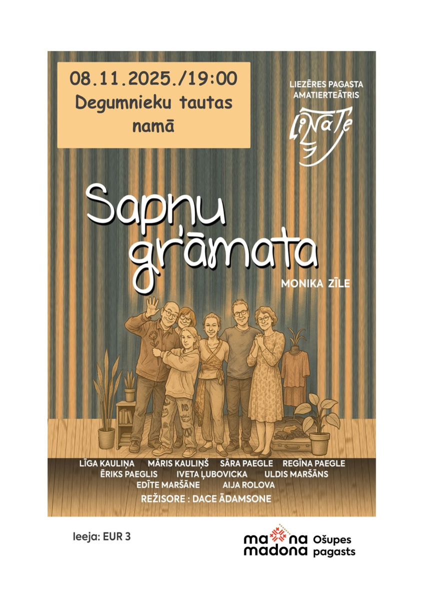 Notiek: 8. novembris 19:00 - 20:30 Ošupe; Degumnieku tautas nams