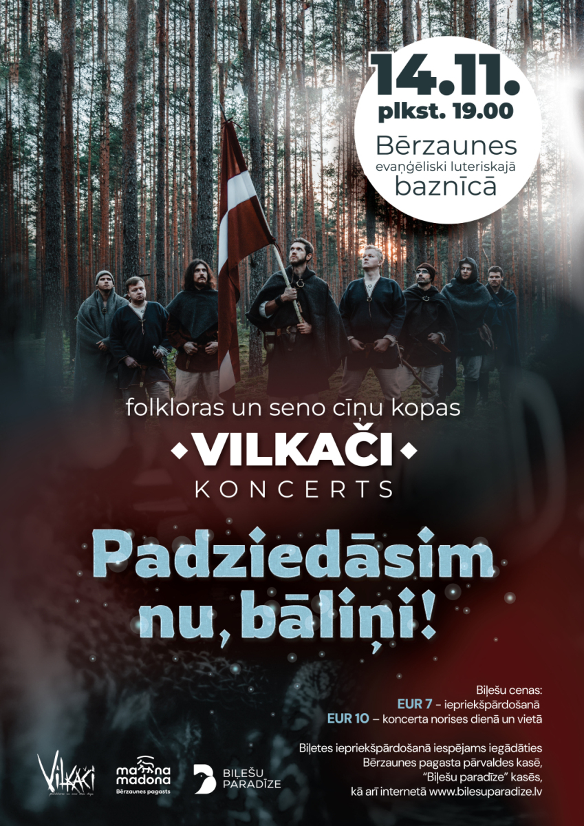 Valsts svētku mēnesī uz skanīgu un patriotisku koncertu aicina folkloras un seno cīņu kopa “Vilkači” – dziesmai izskanot caur senā karavīra prizmu, kurš ir kā uzskatāms paraugs tautas gara spēkam, mīlestībai pret dzimteni, alkām pē