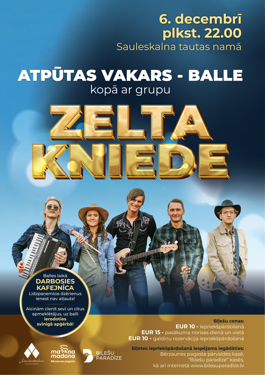 6. decembrī uz atpūtas vakaru – balli aicina grupa “Zelta kniede”.