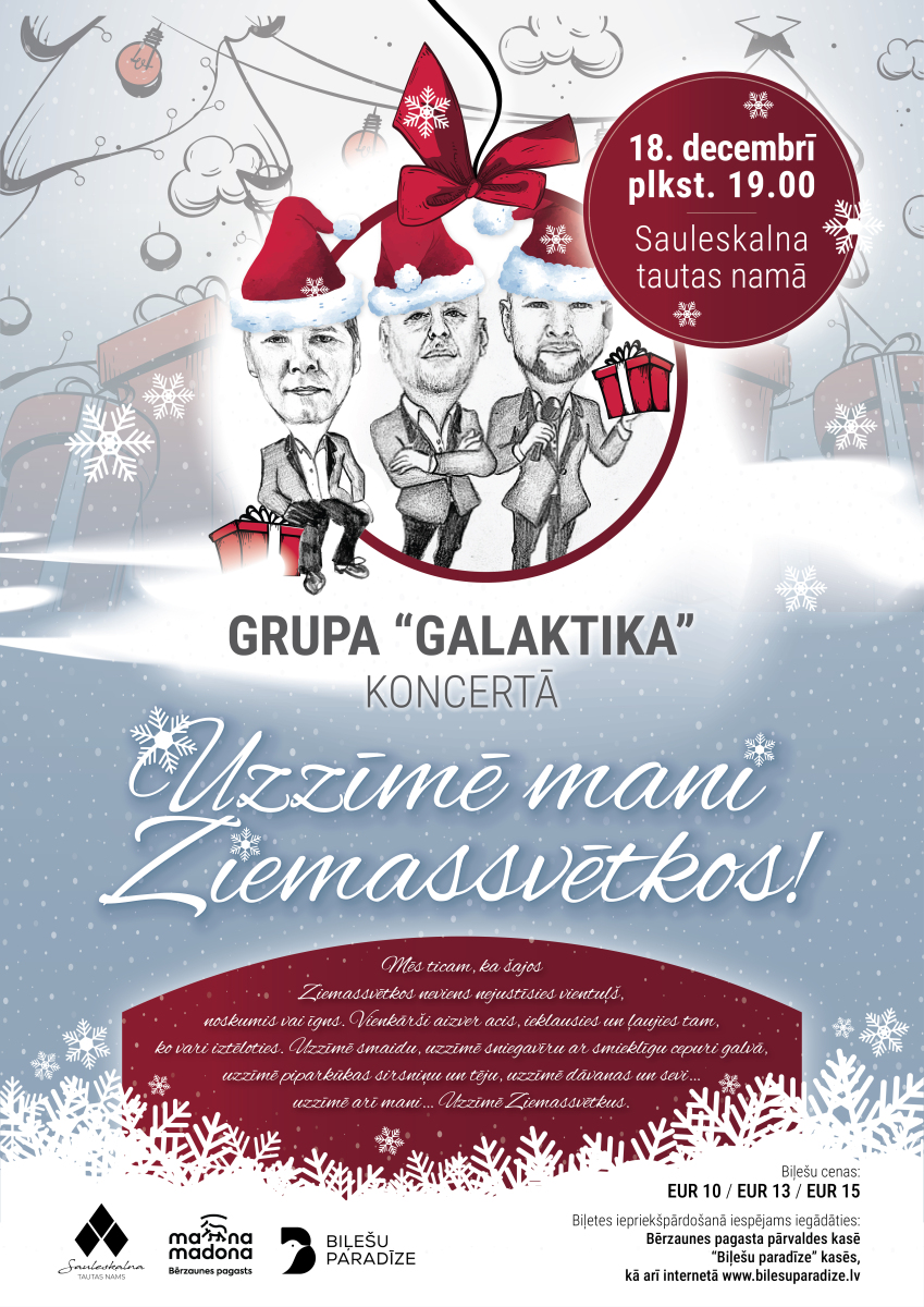 18. decembrī uz ziemas koncertu “Uzzīmē mani Ziemassvētkos” ielūdz populārā mūzikas grupa “Galaktika”.