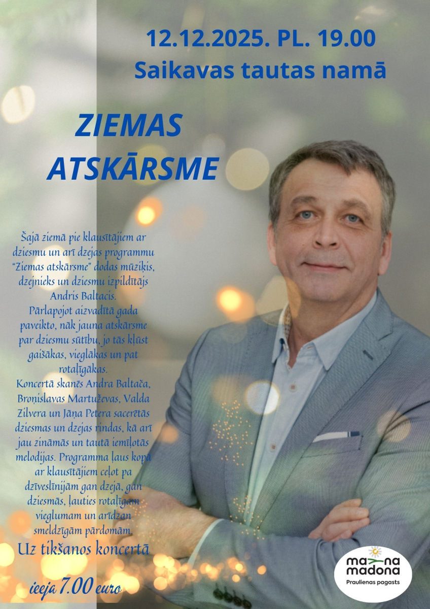 Aicinām uz īpašu muzikālu vakaru Saikavā, kur uzstāsies Andris Baltacis no grupas "Baltie lāči" ar savām dziesmām un sirsnīgu koncertprogrammu. Nāc baudīt labu mūziku un patīkamu atmosfēru.