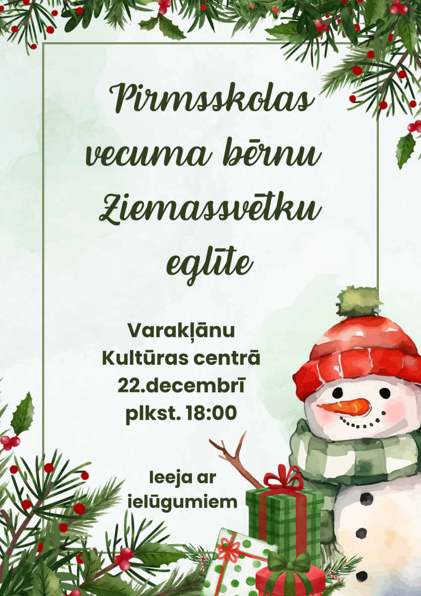 Mazie Varakļānu apvienības pārvaldes pirmsskolas vecuma bērniņi un viņu vecāki tiks aicināti uz sirsnīgu un prieka pilnu Ziemassvētku eglīti!