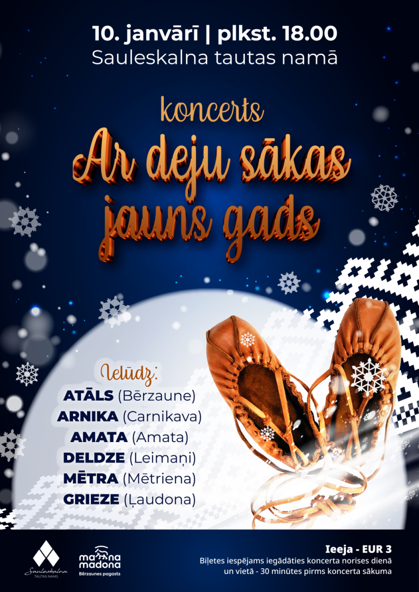 Ir iesācies jauns gads - ar laba vēlējumiem, labiem nodomiem un dejām, kas Sauleskalna tautas namā rībēs 10. janvārī plkst. 18.00, kad 2026. gadā iedejos seši deju kolektīvi no dažādām Latvijas vietām.