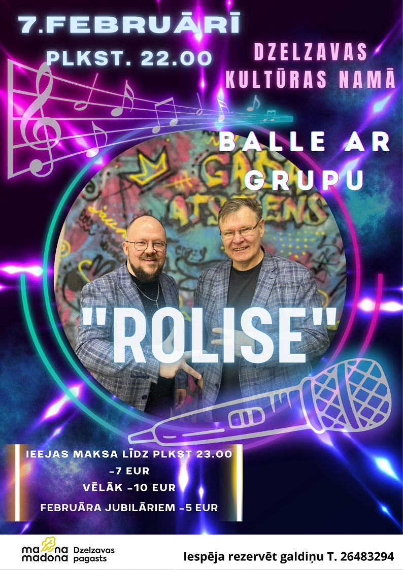7. februārī Dzelzavas kultūras namā gaidāma balle ar grupu “Rolise” no Gulbenes.