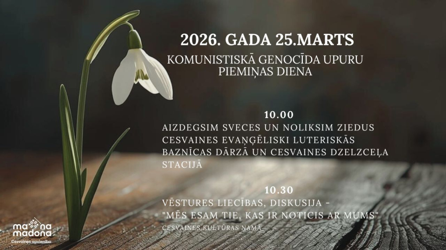 25. martā Cesvainē notiks Komunistiskā genocīda upuru piemiņas dienas pasākumi, aicinot kopīgi godināt deportāciju upuru piemiņu.