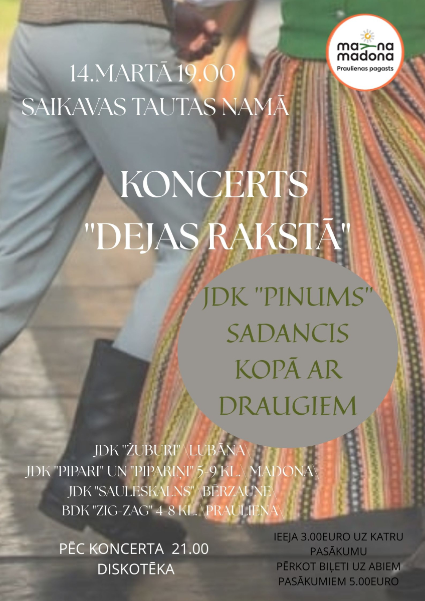Jauniešu deju kolektīvs “Pinums’’ aicina uz pavasarīgu sadanci Saikavas tautas namā.