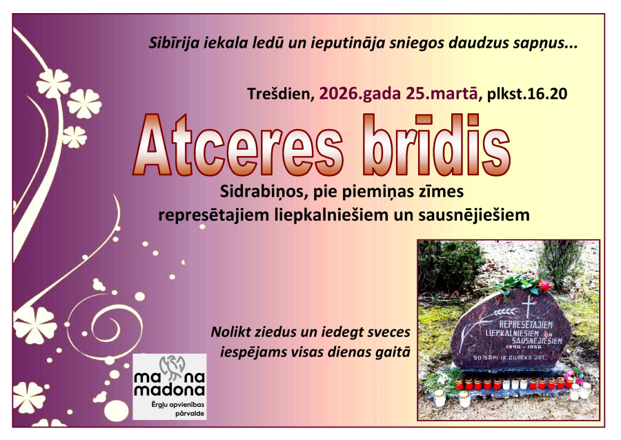 Plkst. 16.20 esiet aicināti uz 1949.gada 25.marta komunistiskā genocīda upuriem veltīto atceres brīdi.