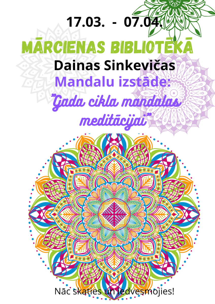Dabas mandalu izstāde un esejas gada katram mēnesim Mārcienas bibliotēkā skatāmas līdz 7.aprīlim.