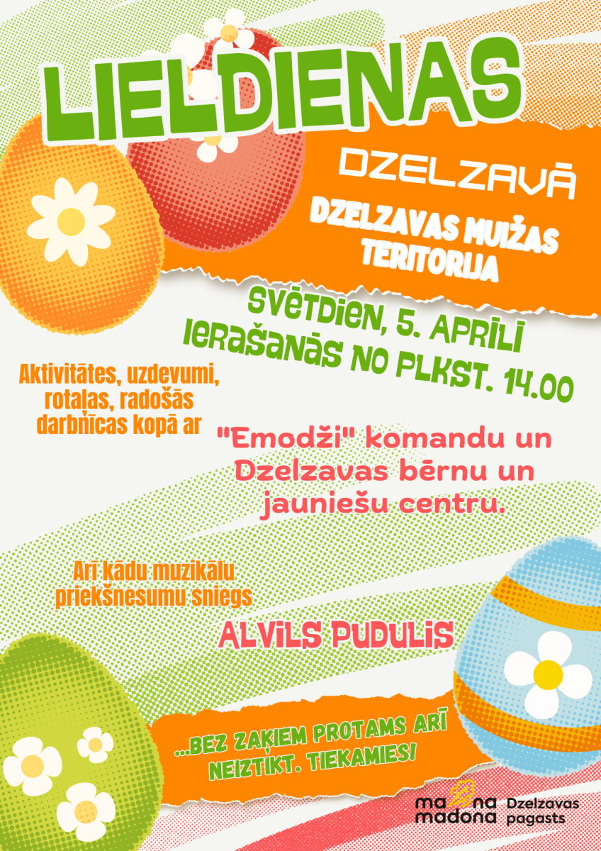 5. aprīlī Dzelzavā, Dzelzavas muižas apkārtnē svinēsim Lieldienas.