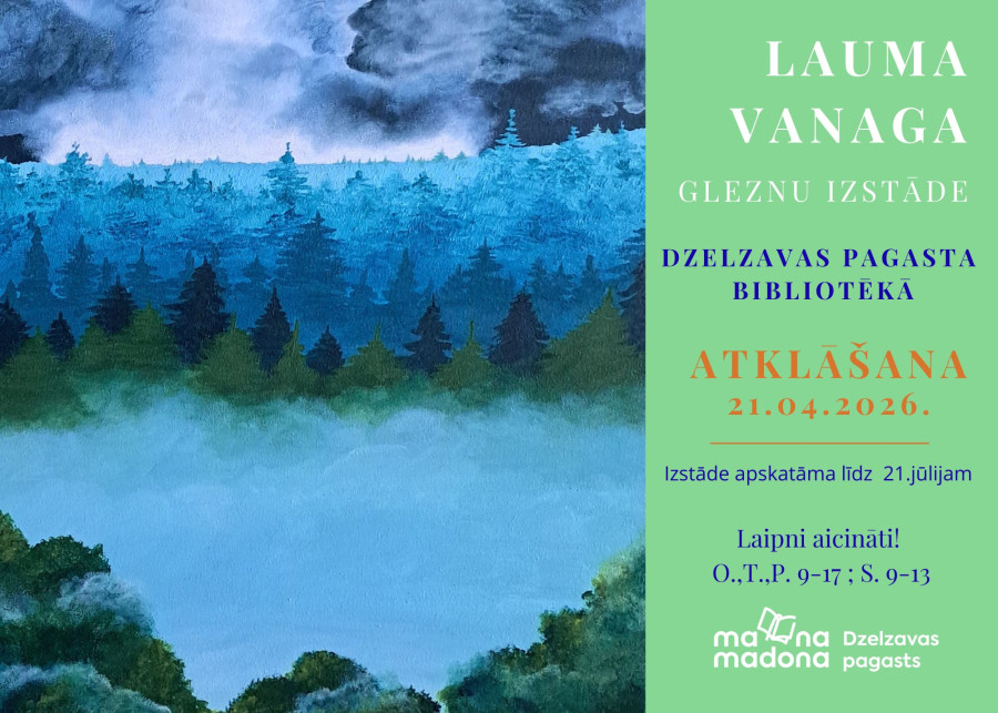 21. aprīlī plkst. 9.00 Dzelzavas pagasta bibliotēkā tiks atklāta dzelzavietes Laumas Vanagas gleznu izstāde. Šī būs jaunietes trešā izstāde bibliotēkā. Šoreiz akcents uz dabu un dzīvniekiem.