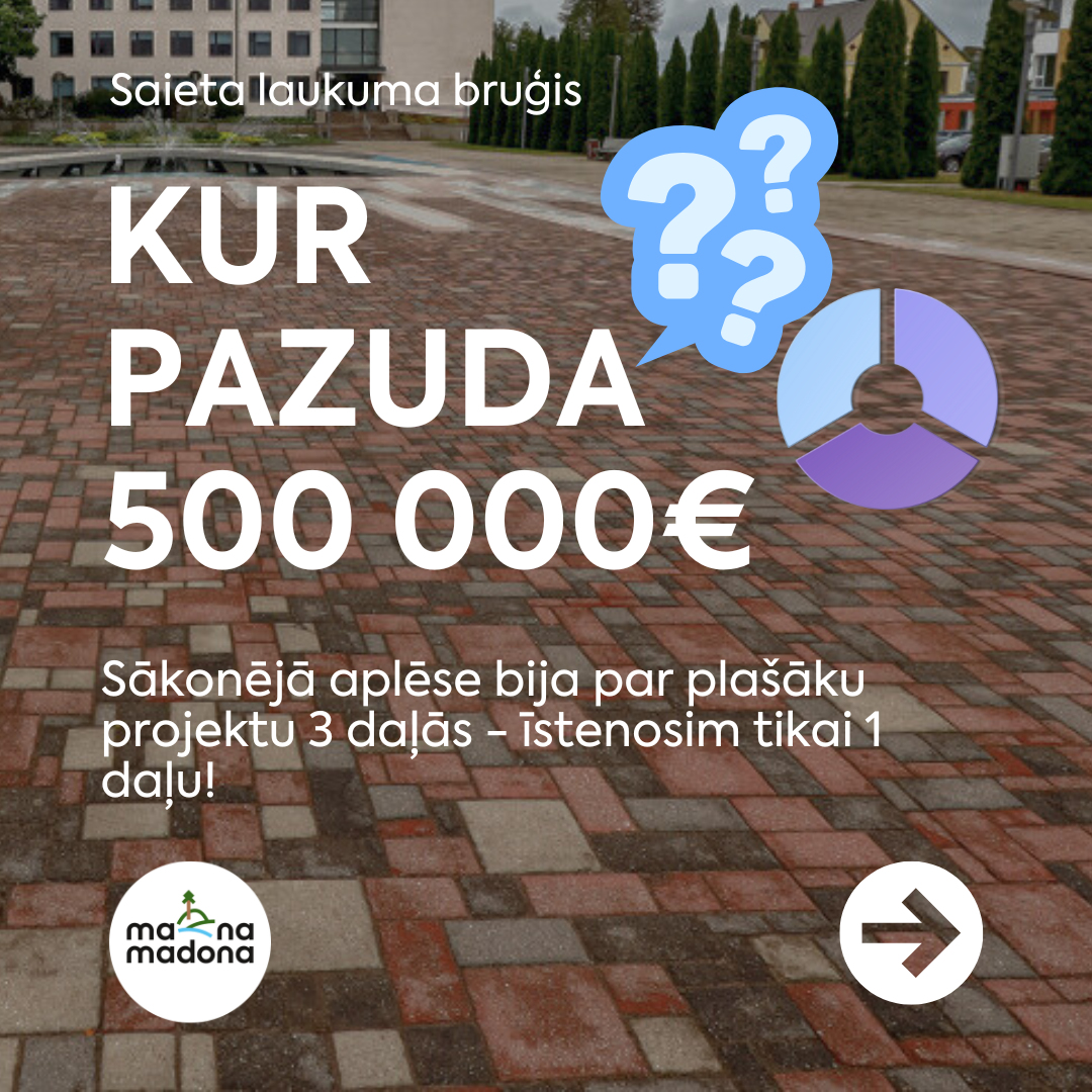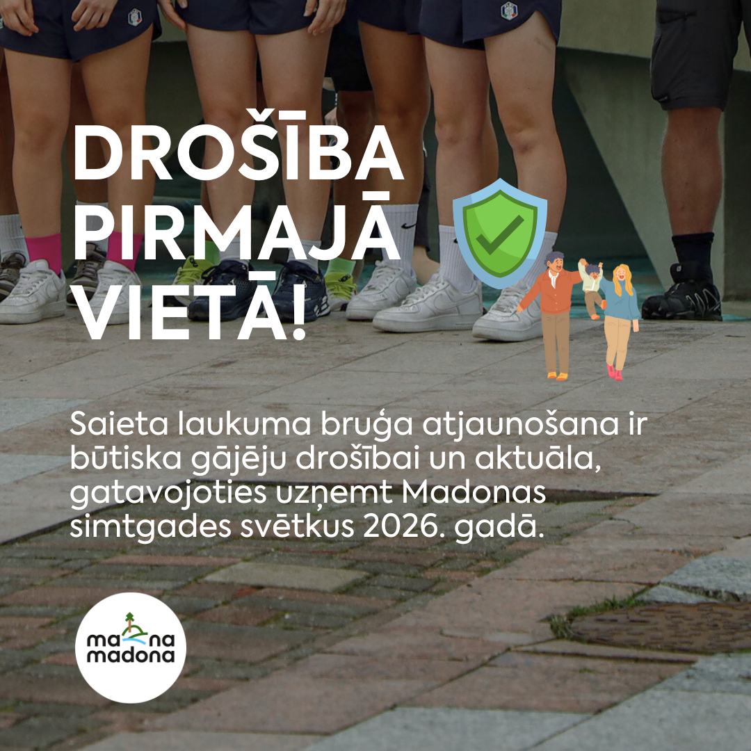 Tikmēr Saieta laukuma bruģis un granīta plāksnes ir bīstami nolietotas, radot traumu risku. Tādēļ šī projekta daļa saglabāta kā prioritāra, lai nodrošinātu gājēju drošību un gaidāmās Madonas simtgades (2026. gads) svinības.