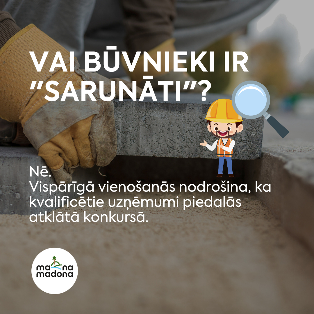 Potenciālie būvnieki nav “sarunāti”. Pašvaldība strādā ar Vispārīgo vienošanos – tas nozīmē, ka noteiktā jomā (piemēram, bruģēšanas darbi) vispirms notiek atklāta atlase. Šajā posmā tiek pārbaudīta uzņēmumu pieredze, dokumenti un spējas izpildīt šāda mēroga darbus.