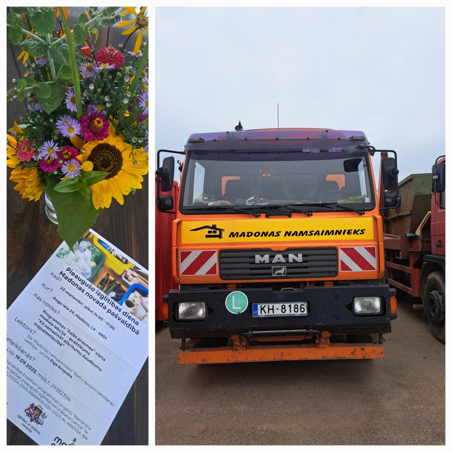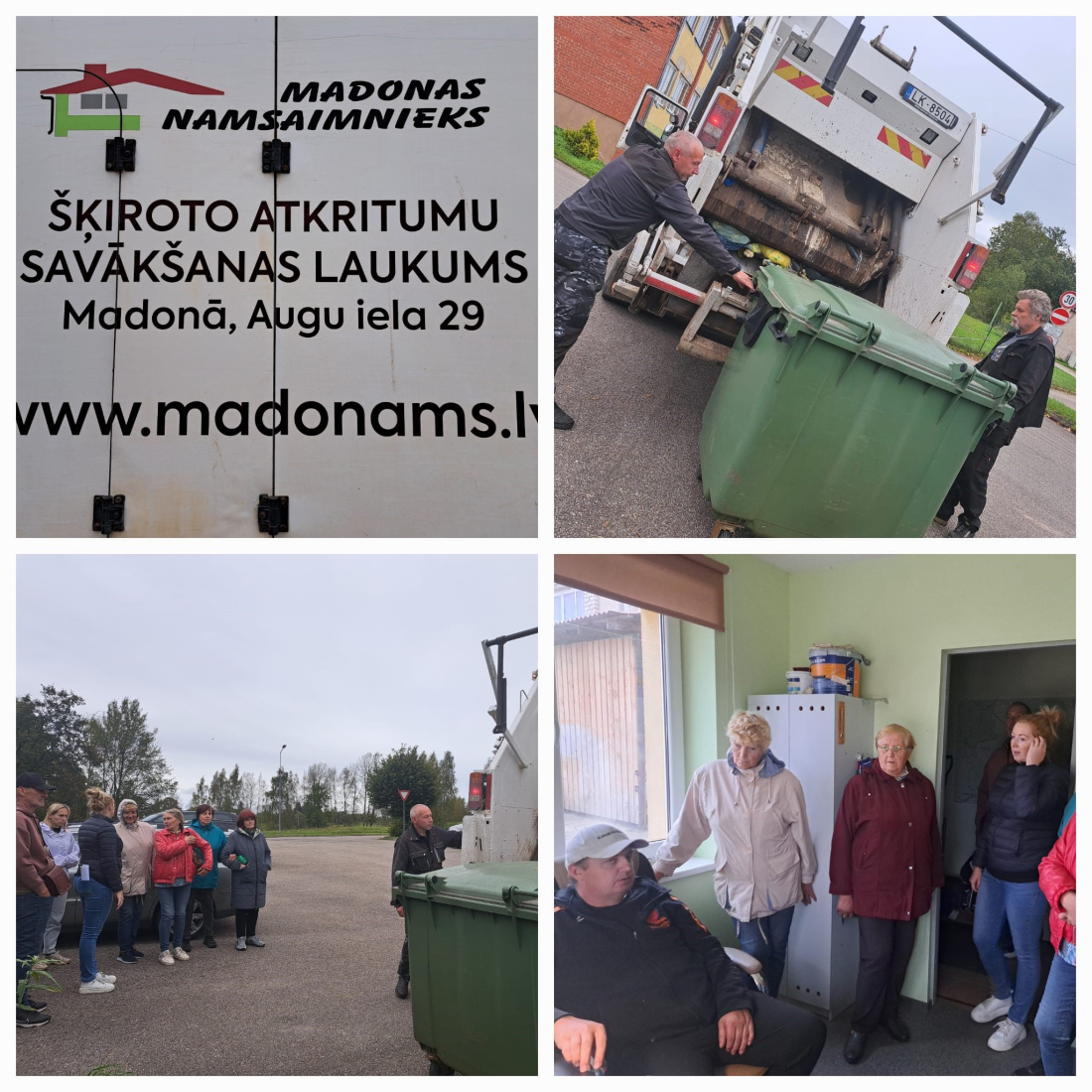 1.daļā bija iespēja reāli ielūkoties SIA “Madonas namsaimnieks” darba ikdienā, klātienē redzot gan atkritumu savākšanu no konteineriem, svēršanu, izbēršanu, šķirošanu un apstrādi. Nozīmīgi bija arī uzzināt, kādus tad atkritumus iedzīvotāji ikdienā saražo un kas nonāk konteineros, ko var vest uz SIA “Madonas namsaimnieks” teritoriju un nodot klātienē gan bez maksas, gan par samaksu. Kā atzina klausītāji: “Labāk vienreiz ir redzēt, nekā daudzas reizes dzirdēt”.