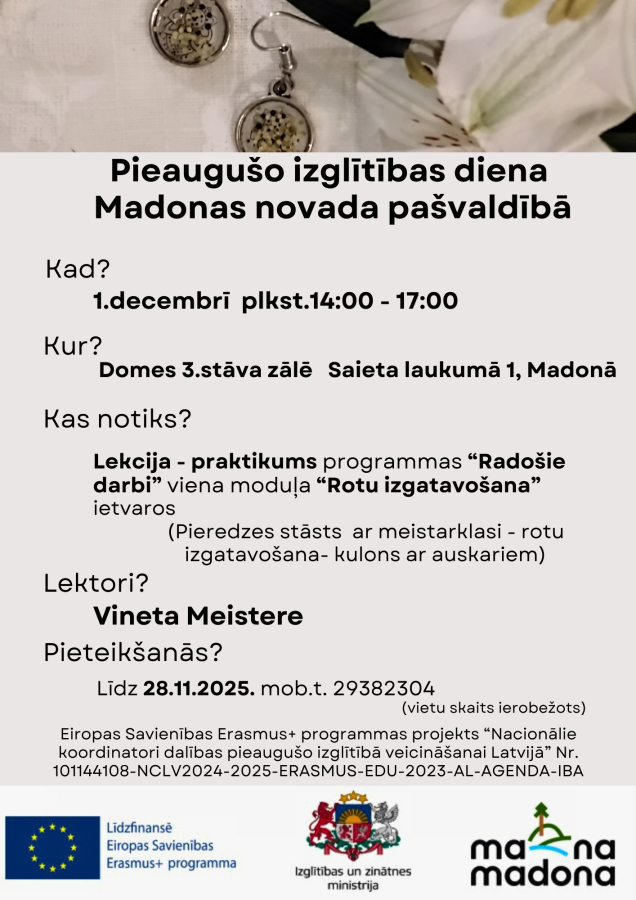 Pieteikšanās līdz 28.11.2025. zvanot pa tālruni 29382304. Vietu skaits ierobežots.