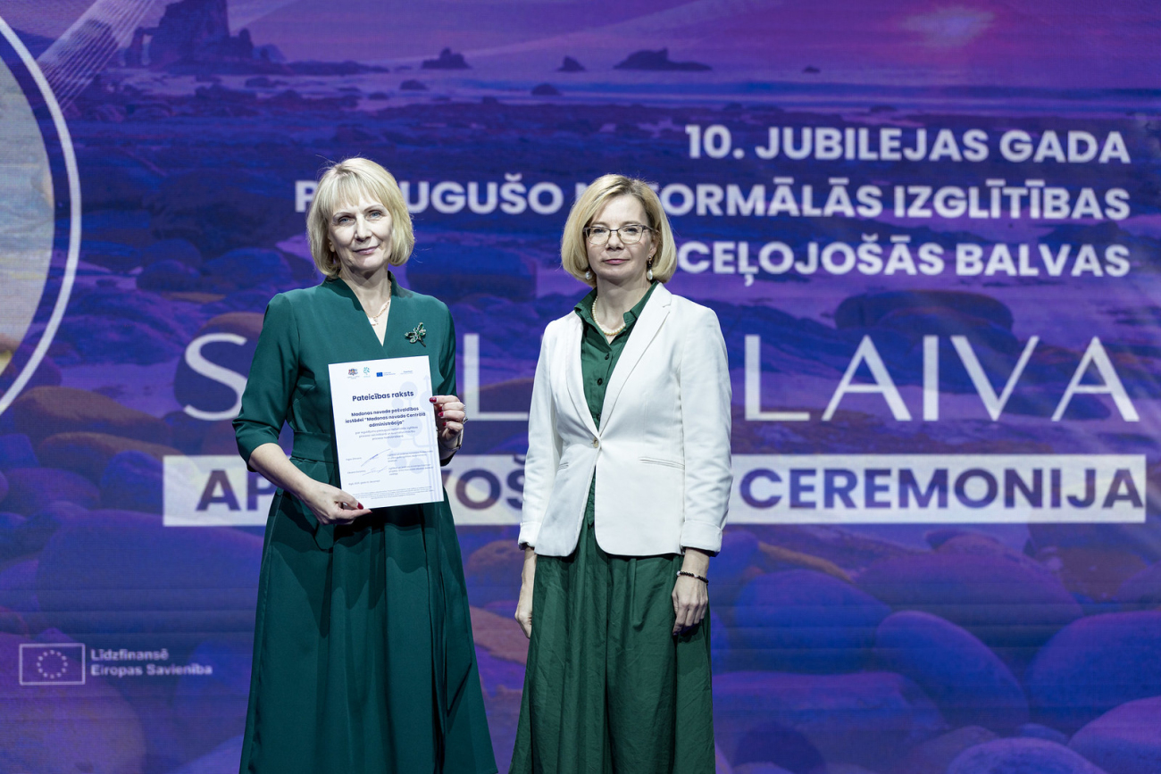 Madonas novada pašvaldības iestādei “Madonas novada Centrālā administrācija” tika pasniegts Pateicības raksts par ieguldījumu pieaugušo neformālās izglītības procesa veicināšanā un kvalitatīva mācību procesa nodrošināšanā. Pateicības rakstu saņēma Izglītības pārvaldes vadītāja Solvita Seržāne un vecākā izglītības darba speciāliste Jolanta Pabērza. Esam gandarīti par mūsu darba novērtējumu neformālajā izglītībā!