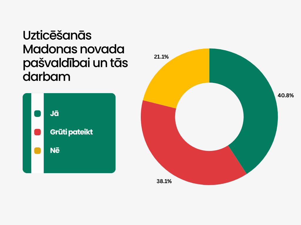Uzticību pašvaldībai pauduši vairāk nekā divas trešdaļas iedzīvotāju (59%), un 65% atzīst, ka pozitīvā informācija publiskajā telpā liek lepoties ar Madonas novadu.